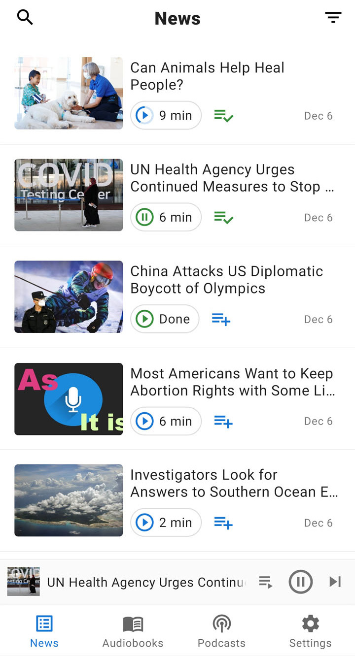 VOA 뉴스, 오디오북, 팟캐스트와 같이 영어 오디오 위주의 무료 컨텐츠로 리스닝 공부에 중점을 두고 만들었습니다.