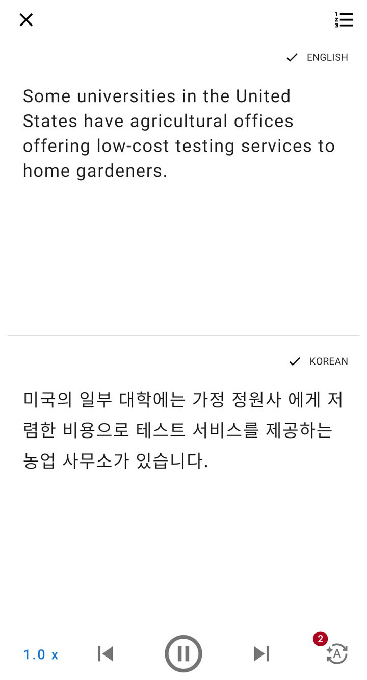 2. 문장을 선택하여 지정한 구간을 반복 듣기 가능